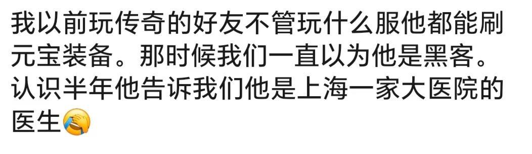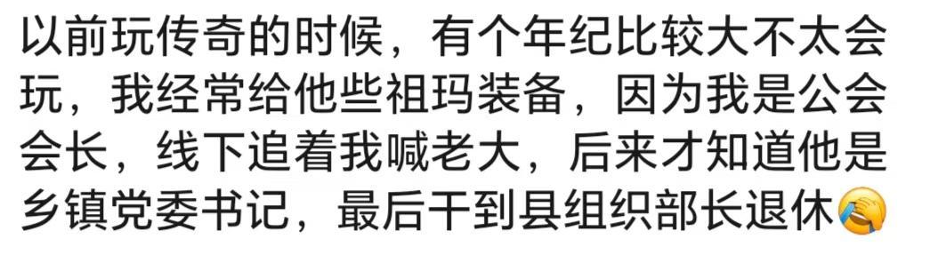 魔兽世界队友,团长:上海某医院外科医生,奶骑:某国企书记,法师:某机关干部,牧师:南方纳税大户老总