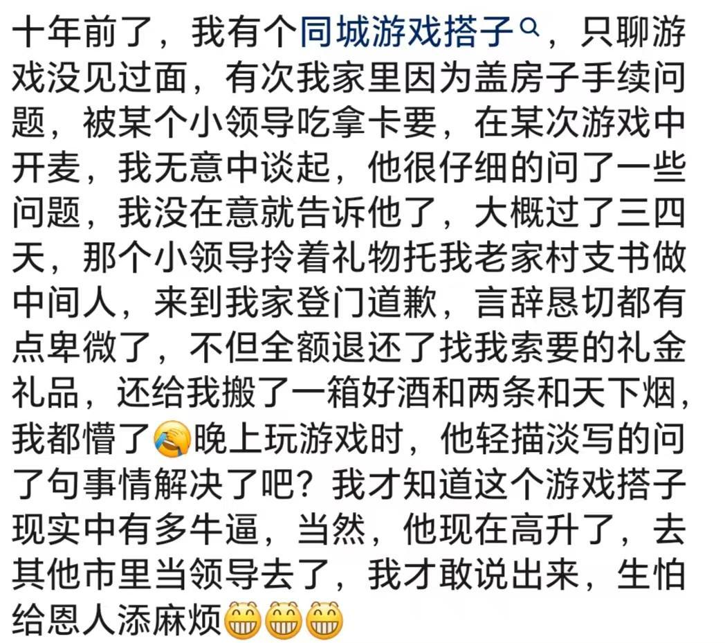 我玩魔兽认识一个北京的朋友,后来才知道他是省厅的处长